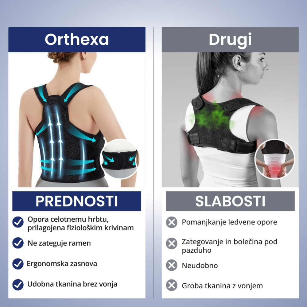 Elastični ojačavajući remen dodatno podupire struk, dok ergonomski dizajn omogućuje prirodno kretanje i učinkovitu korekciju držanja.