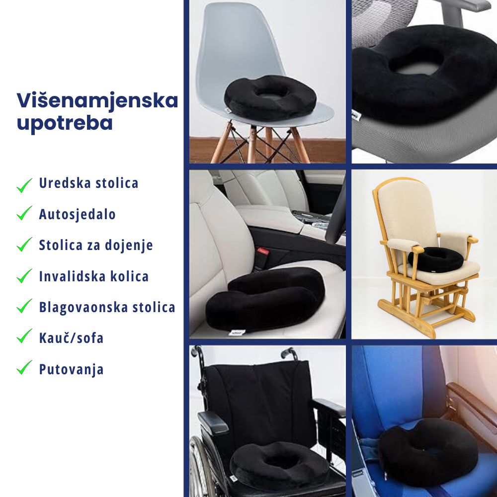 • Udobnost bilo gdje – lagani i prijenosni jastuk pogodan za uredsku stolicu, automobil, invalidska kolica ili kućni naslonjač.